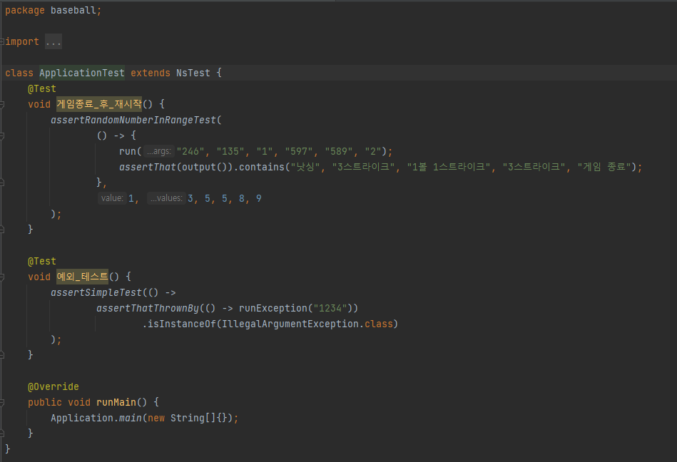 게임종료_후_재시작() 테스트코드를 보면 run()이 들어가있는 것을 확인할 수 있다.