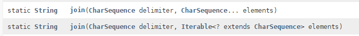String.join() : 문자열 배열 내의 여러 개의 요소를 붙일 때 사용한다.