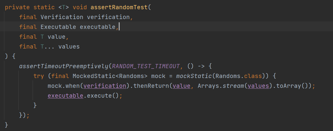 MockedStatkc<Randoms> mock으로 목객체를 만들고,