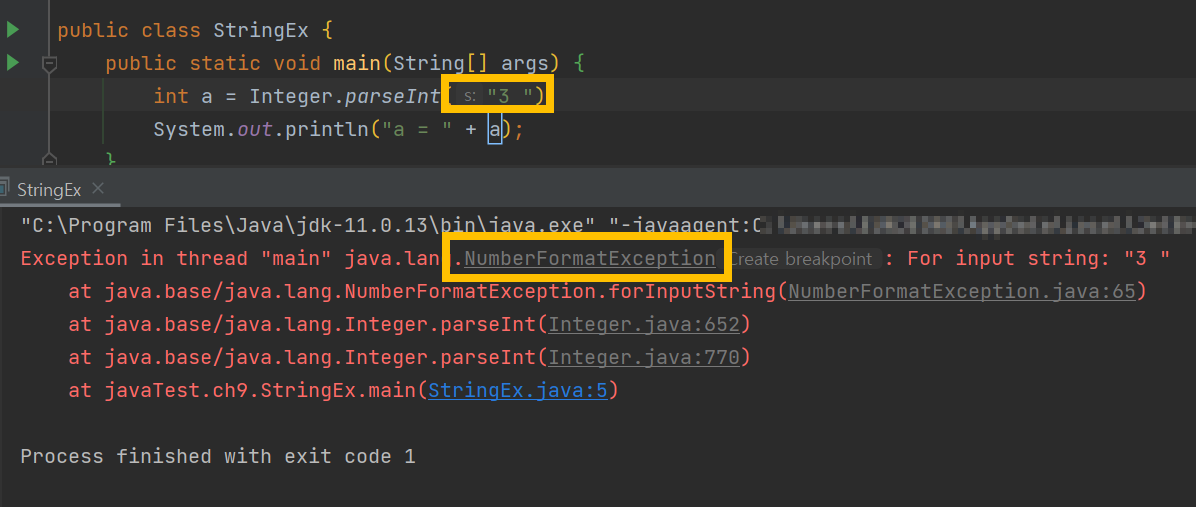 변환 시 예외(NumberFormatException)가 발생할 수 있다.