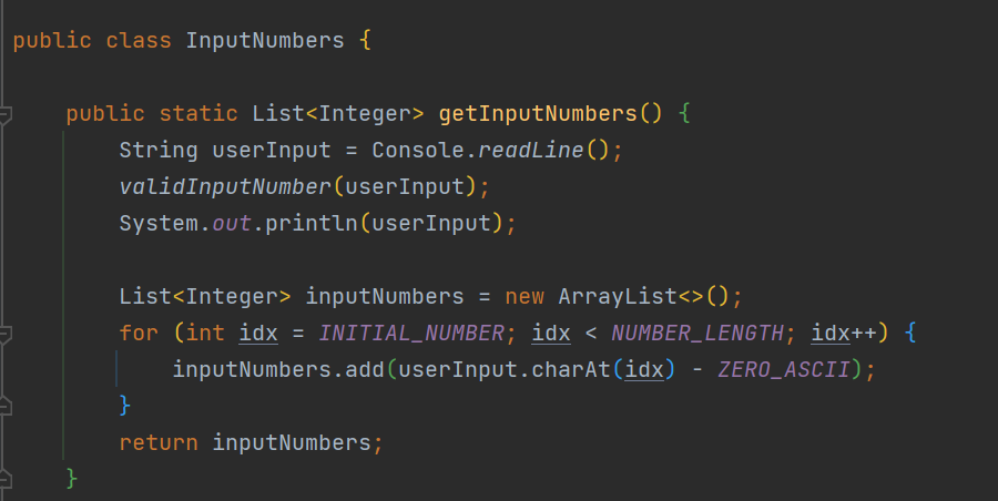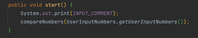 사용자의 입력은 UserInputNumbers의 getUserInputNumbers 메서드를 통해 받고, 이를 compareNumbers 메서드에서 비교한다.