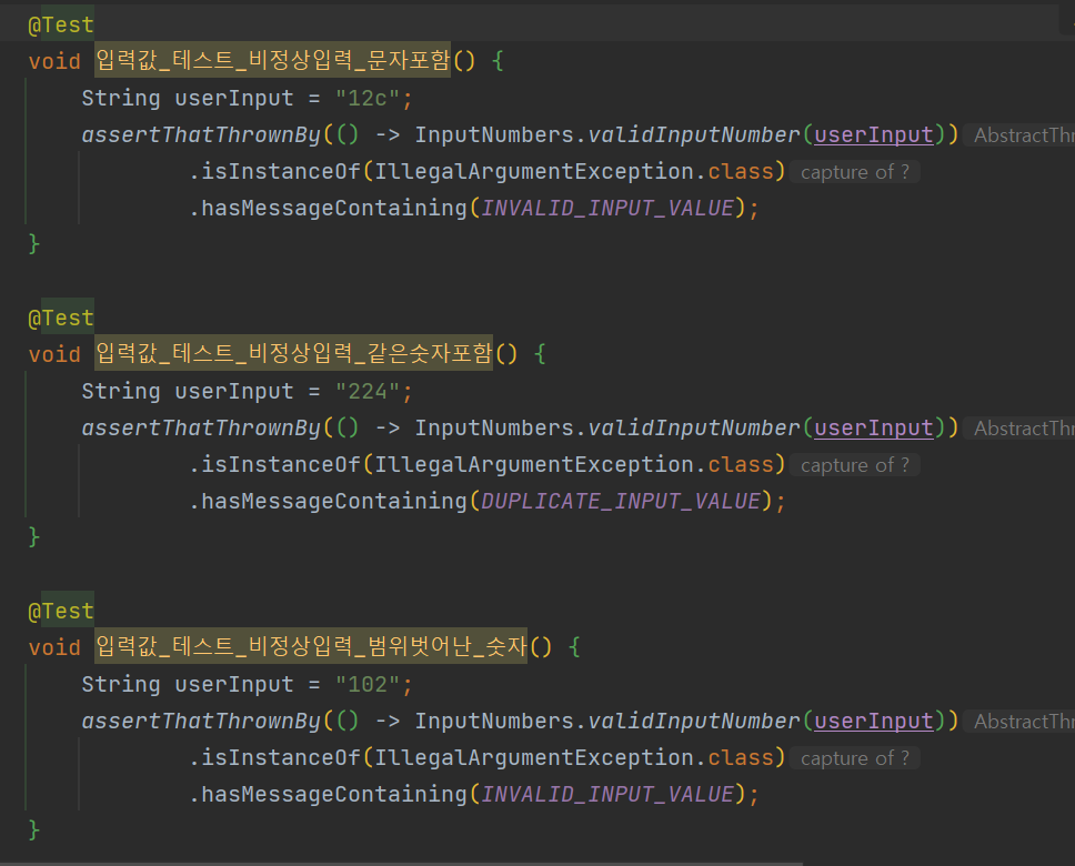 메서드 명에 어떤 테스트인지 적혀 있어서 뭔지 알긴 알겠는데, 안에 로직을 모르니 답답했다.
