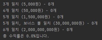 int는 -2,147,483,648 ~ 2,147,483,647 를 허용하기 때문에 6개 일치하는 로또가 2개 이상이면 바로 에러가 발생한다....