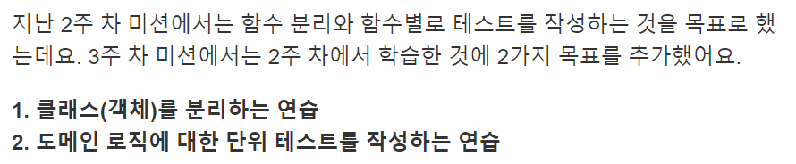 클래스를 분리하고, 도메인 로직에 대한 단위 테스트를 작성하는 연습을 하는 것이 목표였다.