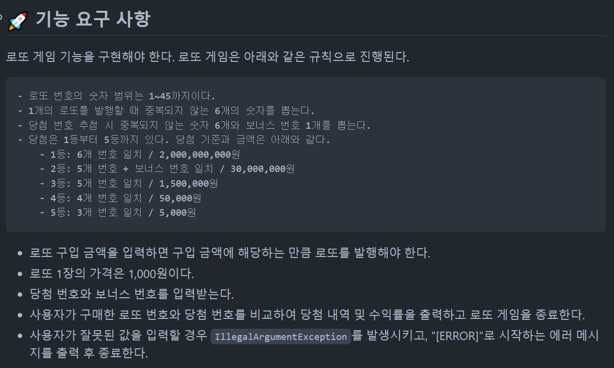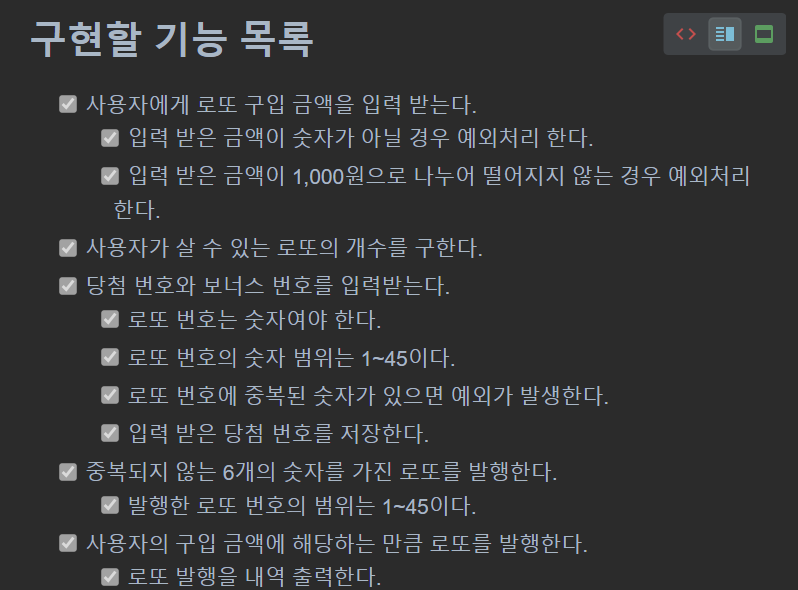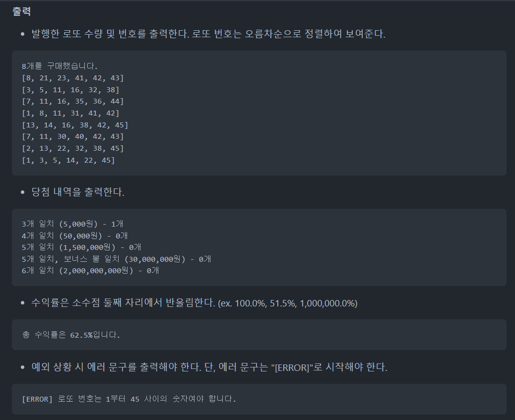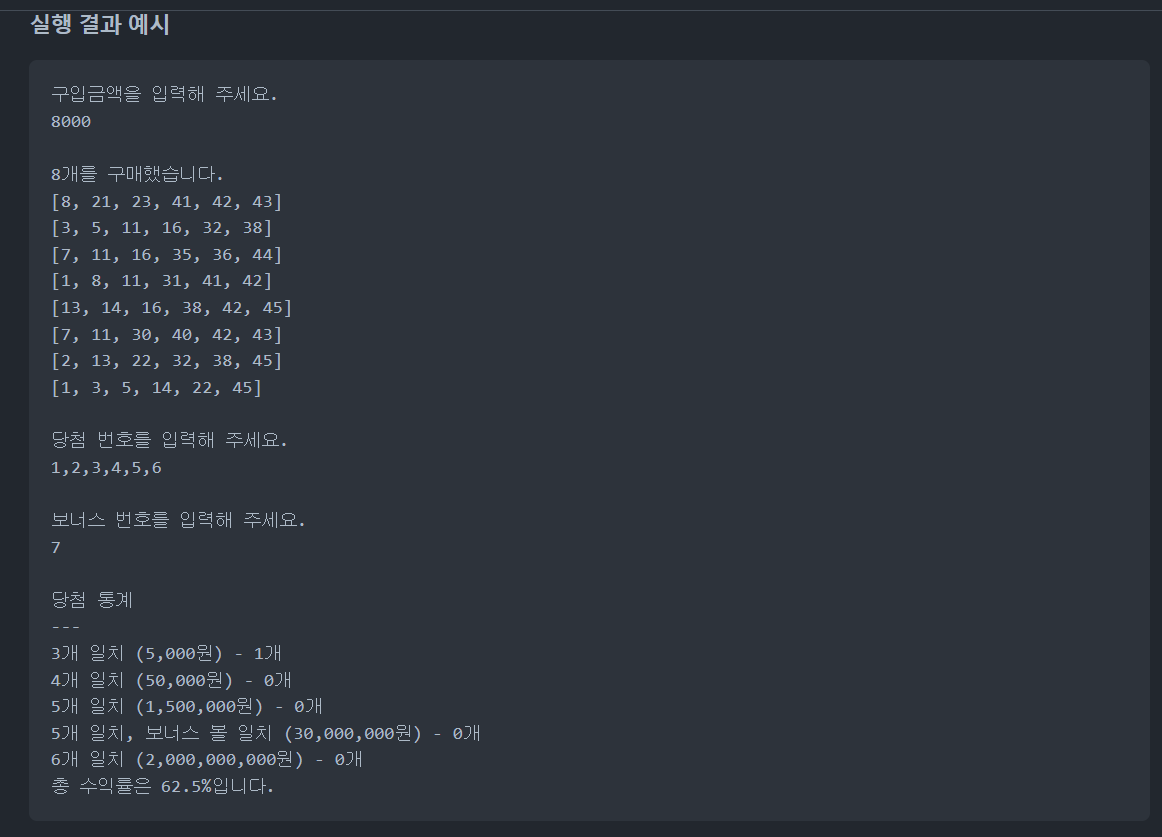 제공된 Lotto 클래스를 사용해야 했다.