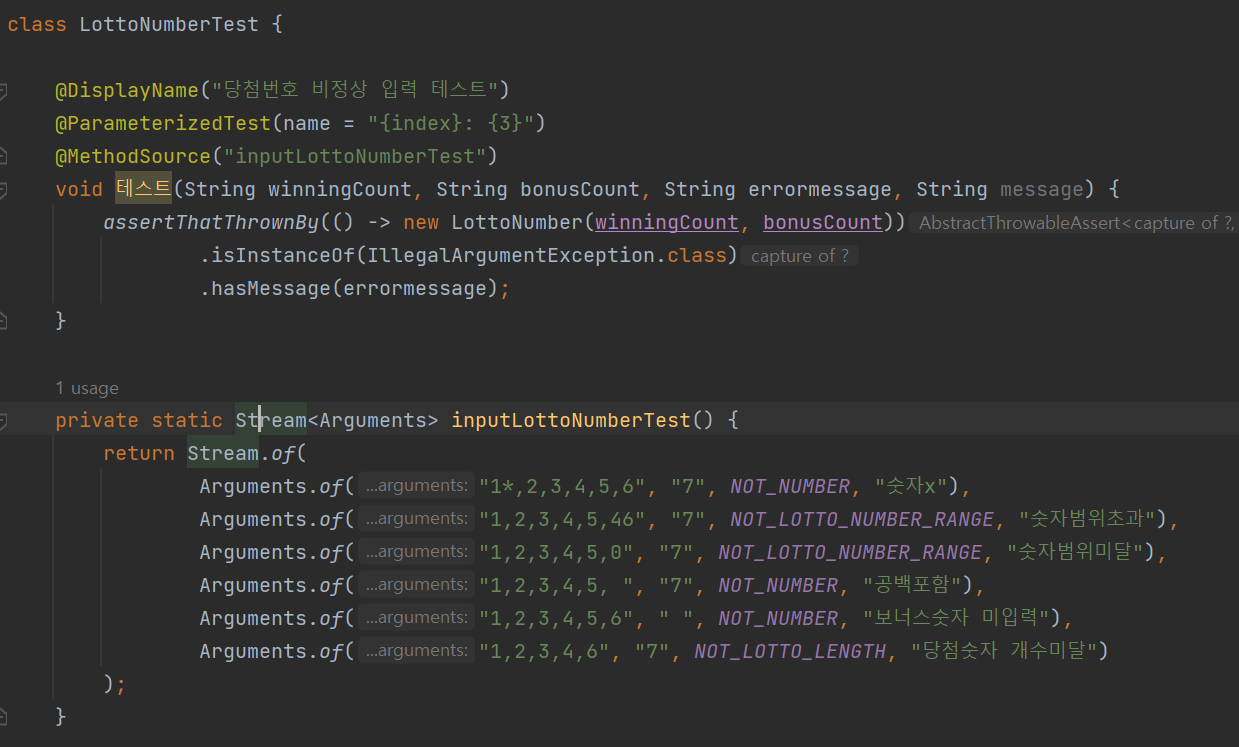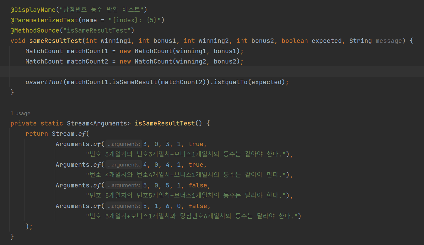 source를 넣는 여러 방법 중 @MethodSource를 사용했다.
