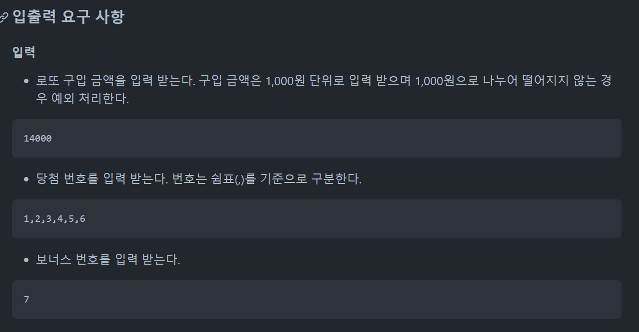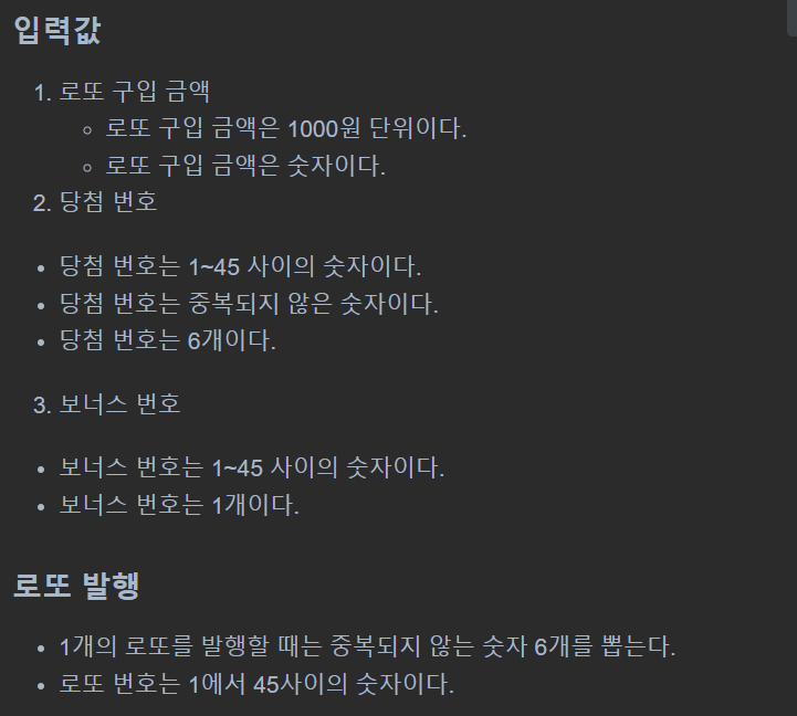 입력 값과 로또 발행의 조건만 봐도, 겹치는 게 많다.