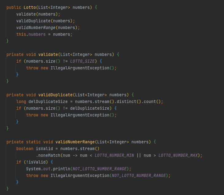 로또 번호를 생성하는 Lotto 클래스의 validation로직의 중복이 상당히 많음을 발견했다.
