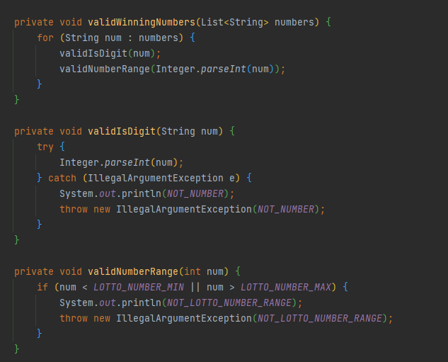 LottoNumber 클래스 안에 입력값 검증 로직을 넣자니, 다른 데서도 쓰일 것 같은 이 중복된 로직을