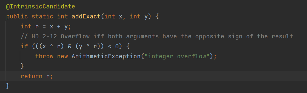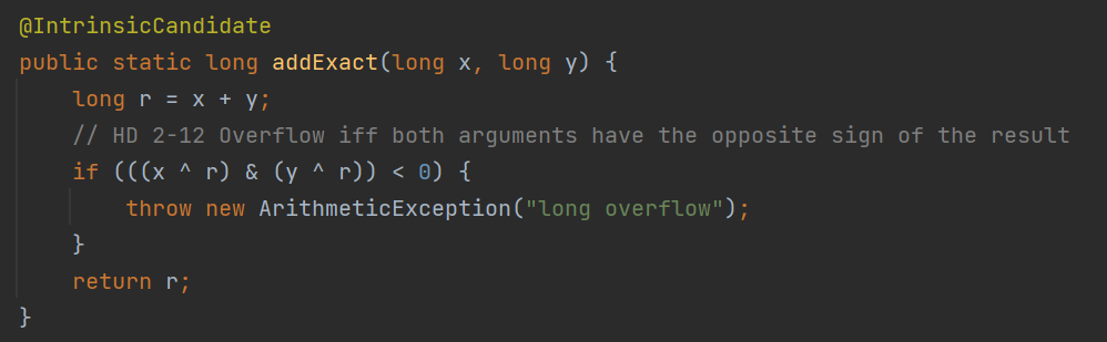 하지만 JDK 8부터 Math 클래스에 두 개의 addExact() 메서드가 추가됐다.