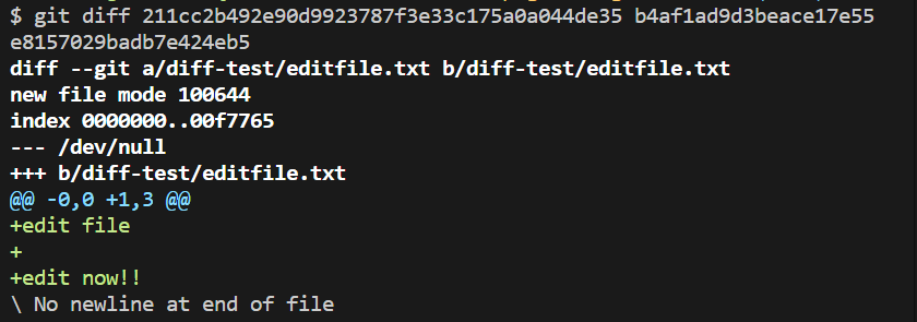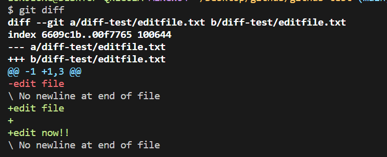 diff-test 폴더 안에 oldfile.txt와 editfile.txt가 있다.