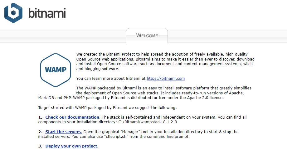 먼저 https://bitnami.com/stack/wamp/installer 에 가서 WAMP packaged by Bitnami를 다운받는다.