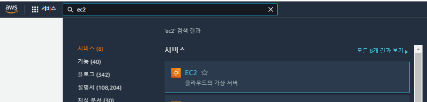 - 검색 창에 EC2라고 치면 찾을 수 있다.