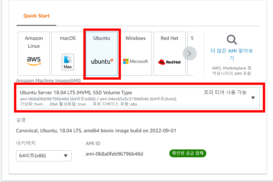 - 나는 Ubuntu Server 18.04를 선택했다.