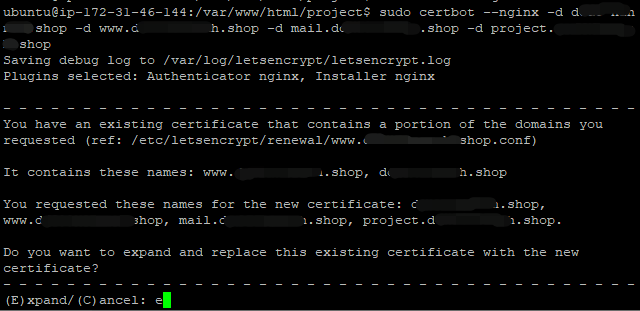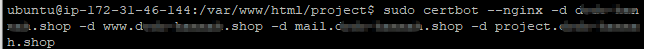 $ sudo certbot --nginx -d [도메인]
