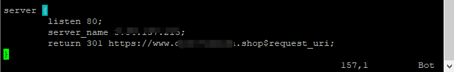 1. /etc/nginx/sites-available/default로 이동하여 Domain Redirection 적용