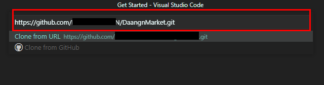 그리고 중앙 위쪽에 뜨는 창에 복사한 깃허브의 리포지토리 주소를 붙여넣는다.