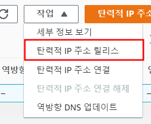탄력적 IP에 가서 삭제할 IP를 선택하고 탄력적 IP주소 릴리스를 눌러준다.